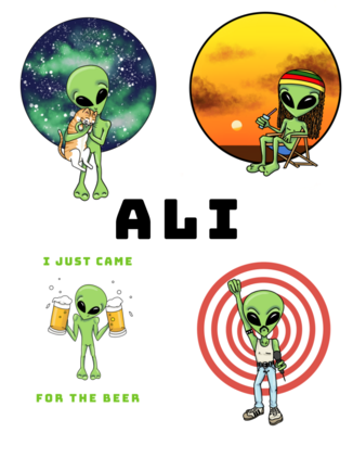 Desde hace mucho tiempo tenĂa la idea de crear un personaje sin gĂ©nero, que sepa reĂrse de lo que pasa en la actualidad. AsĂ nace ALI, un alien que tiene derecho a superarse y buscar nuevas oportunidades en nuestro planeta. Los que vivimos fuera de nuestros paĂses somos un poco como ALI, acostumbrándonos a una nueva realidad y aprendiendo a convivir con nuevas “criaturas”.
