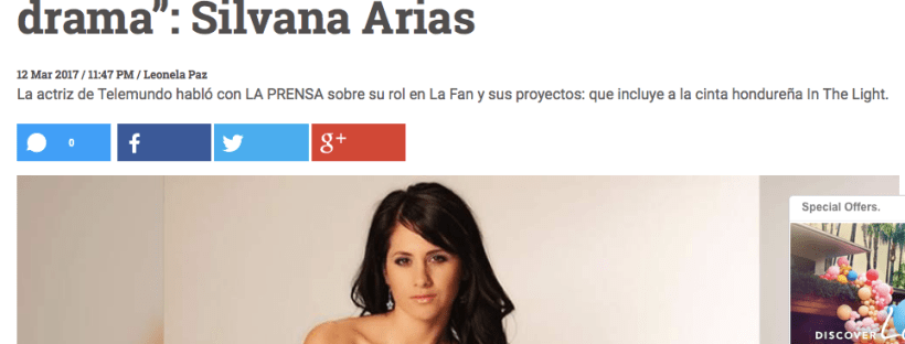 Feliz de anunciarles que el día de hoy salió una nota maravillosa en el Diario La Prensa de Honduras donde hablo de mis nuevos proyectos "La Fan (Telemundo), "En La Luz" (Sharkbait Entertainment) y "Mismatch Made in Heaven"(Las ARIAS Entertainment) y mi opinión sobre la mujer en la actualidad. Como siempre un placer conversar con … Continue reading Gracias Diario La Prensa – Honduras